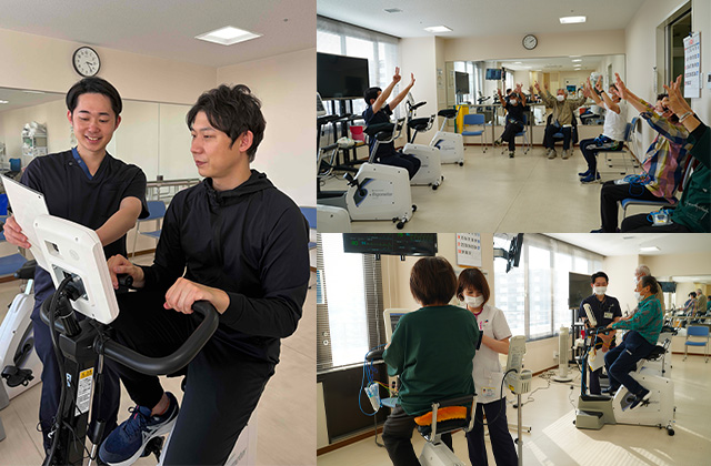 心臓リハビリテーションとは、運動療法や生活習慣指導を通して、運動能力の向上、息切れの軽減、心臓病の管理を行います。それにより生活の質を高め、再入院率や死亡率の低下を目指します。